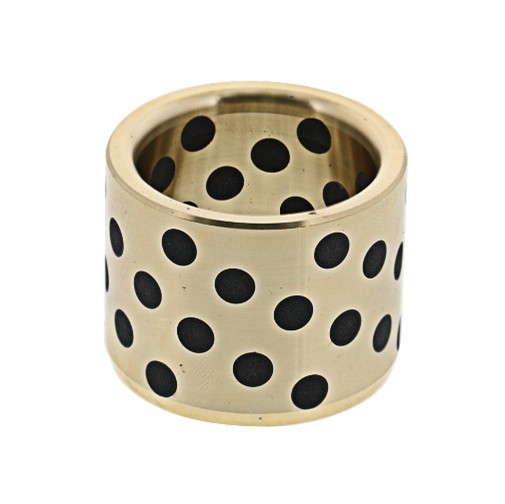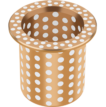 Casted Bronze Material with Soild lubricants of PTFE (Poly tetra flouro ethylene) or Graphite. Plugs Distributed uniformly to cover 27-30% area of Bush Bearings, Plugs Matrix help to provide uniform lubrication on overall inner layer of BushPlugs also designed in such a way to stop dropping of plugs while installation of bush in housing.